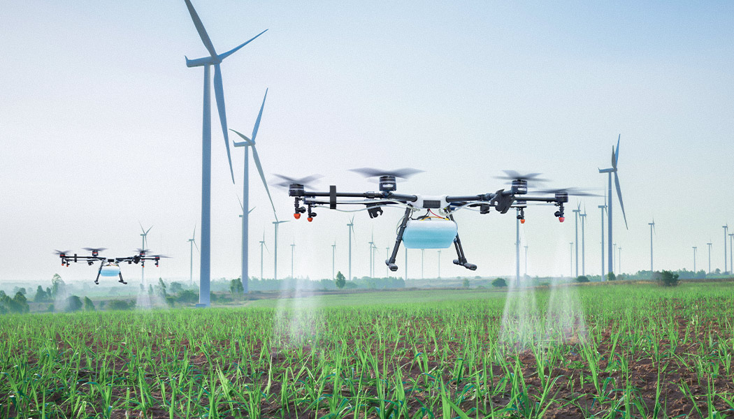Drone flying over a farm field